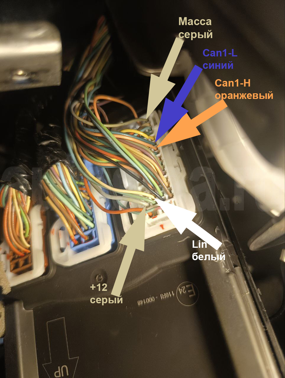 Белый разъём BCM: +12В, масса, CAN1-H, CAN1-L и LIN для обхода иммобилайзера